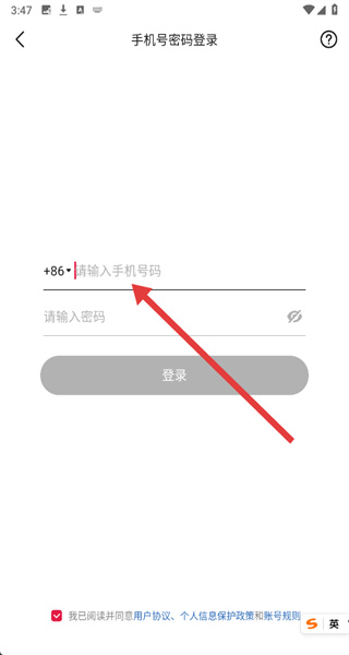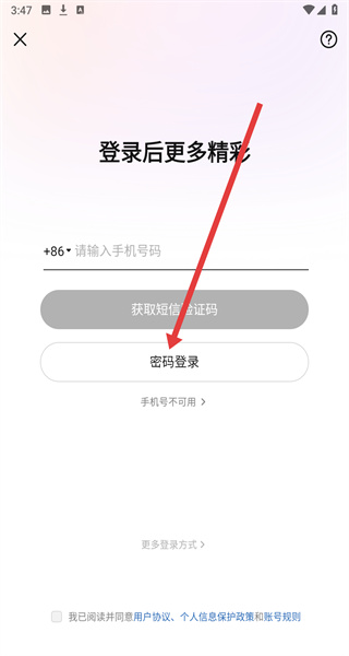 4、在切換為密碼登錄后,即可點擊輸入框依次填寫手機號和密碼信息,完成登錄操作。
