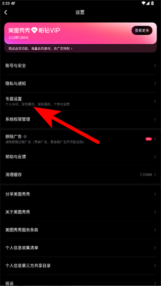 3、在設置頁面點擊專屬設置,進入專屬設置頁面。