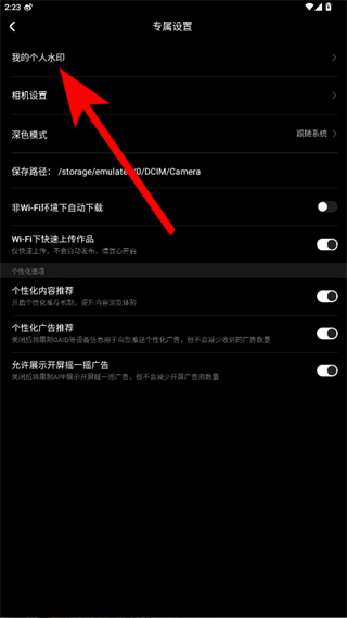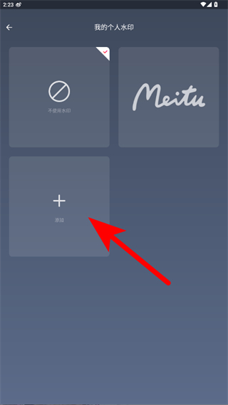 4、在專屬設置頁面點擊我的個人水印,進入我的個人水印頁面后點擊添加,即可設置美圖秀秀的個人水印。
