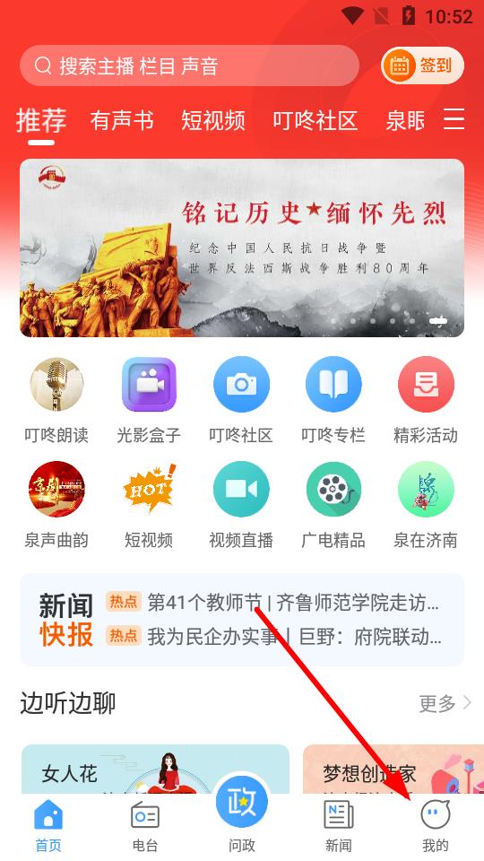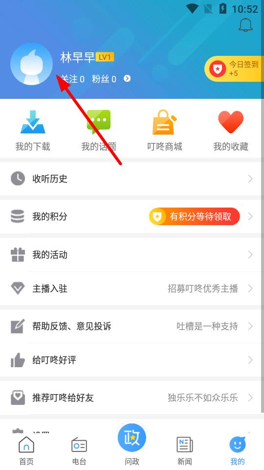 1、打開叮咚FM電臺(tái)APP,點(diǎn)擊底部導(dǎo)航欄中的我的選項(xiàng),進(jìn)入個(gè)人頁(yè)面。