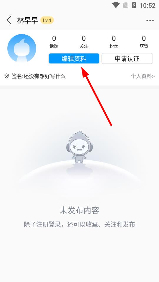 3、在個(gè)人信息展示頁(yè)面里,點(diǎn)擊編輯資料按鈕,進(jìn)入資料編輯界面。