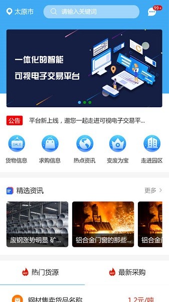 云鋼再生app給用戶帶來辦公服務,豐富的行業(yè)資訊企業(yè)相關的貨物購買,豐富的信息非常的全面,在線的選購還有信息的物流相關的信息跟進讓你了解貨物的詳細信息,快來下載試試吧!