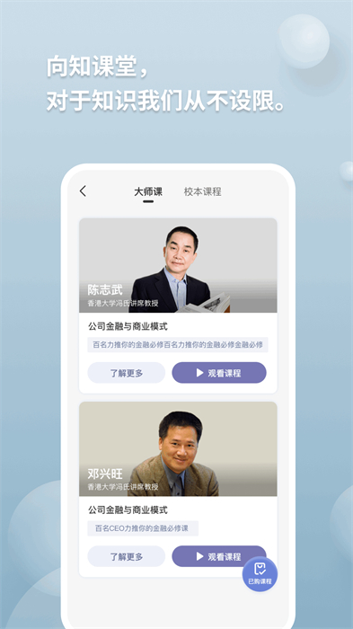2、向知學(xué)院app是一個非常優(yōu)質(zhì)的教學(xué)課程軟件。這里有很多的名師講解線上課程。