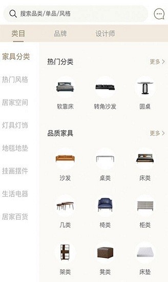 2、這里涵蓋了全屋里面的各種家具產(chǎn)品,用戶(hù)們也可以在首頁(yè)根據(jù)分類(lèi)來(lái)選擇;