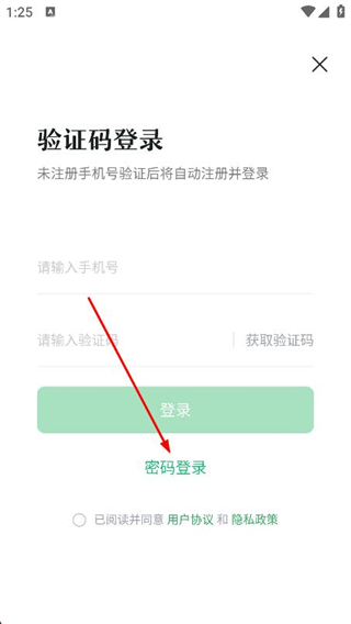 3、在驗證碼登錄頁面,找到并點擊下方的密碼登錄。