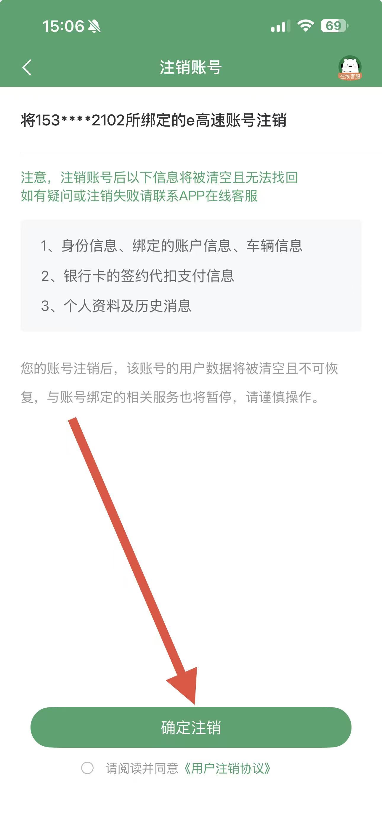 4、在注銷賬號頁面,閱讀相關(guān)提示信息后,點擊確定注銷按鈕,按提示完成后續(xù)操作即可注銷賬號。