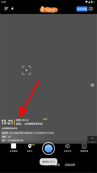 1、打開(kāi)搞定水印相機(jī)APP,在拍攝界面點(diǎn)擊下方顯示的時(shí)間區(qū)域,進(jìn)入水印編輯頁(yè)面。