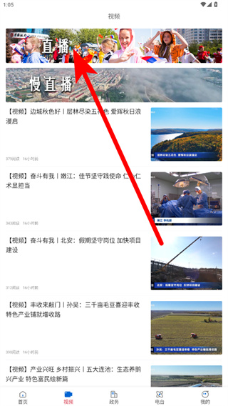 2、在視頻頁面中,找到并點擊帶有直播標(biāo)識的內(nèi)容板塊,進(jìn)入直播列表頁。