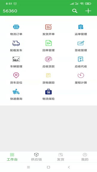 56360app是為生產(chǎn)制造企業(yè)、商貿(mào)流通企業(yè)、電商企業(yè)、物流企業(yè)、司機車主、個人等專業(yè)設(shè)計開發(fā)的手機端應(yīng)用軟件,該軟件有工作臺、供應(yīng)鏈、發(fā)貨、生活臺、物流臺、我的等應(yīng)用功能模塊,提高了工作質(zhì)量和工作效率,是您工作管理的隨身助手。