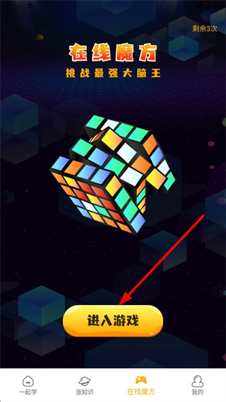 2、在在線魔方頁(yè)面,點(diǎn)擊進(jìn)入游戲按鈕,進(jìn)入游戲界面。