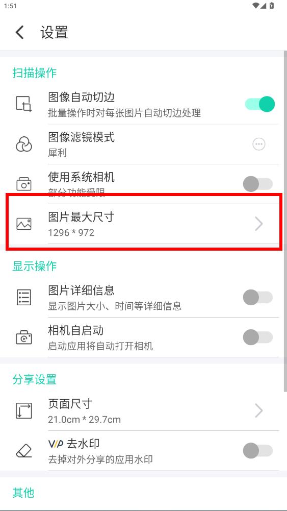 3、在設(shè)置頁面里,找到并點擊圖片最大尺寸選項進(jìn)入尺寸設(shè)置界面。
