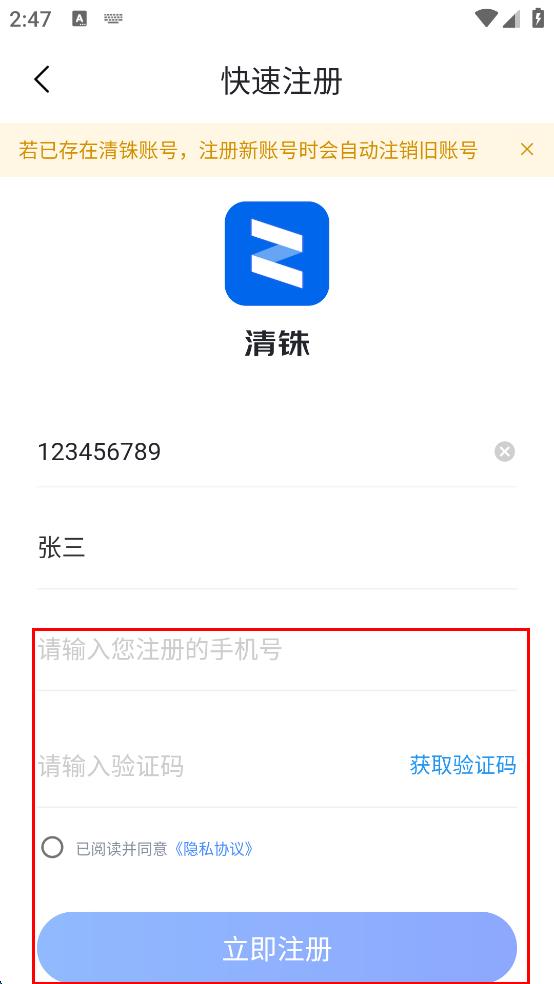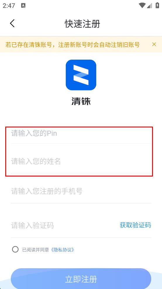 4、勾選“已閱讀并同意隱私協(xié)議”,然后點(diǎn)擊“立即注冊”按鈕。