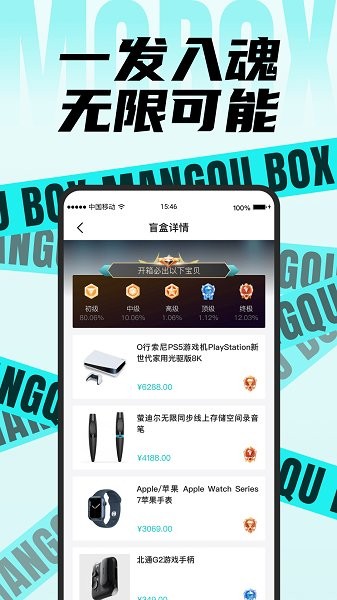 本產(chǎn)品為用戶提供線上盲盒開箱活動(dòng),開箱/抽盒活動(dòng)真實(shí),產(chǎn)品豐富,全是大牌正品。在這里可以開出經(jīng)典限量款,數(shù)碼產(chǎn)品、潮流玩具、超炫酷潮玩盲盒等你來。