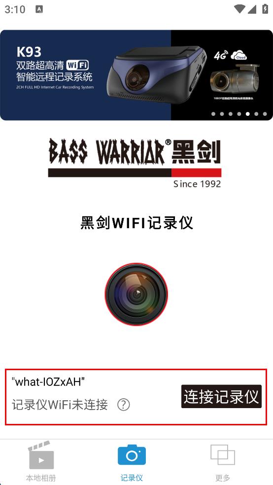 使用APP將手機與黑劍記錄儀通過WIFI進行連接。