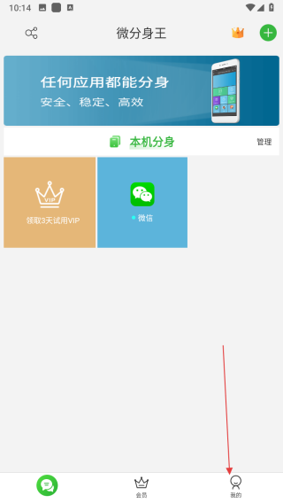 1、打開微分身王APP,點(diǎn)擊底部導(dǎo)航欄的我的,進(jìn)入個(gè)人頁面。