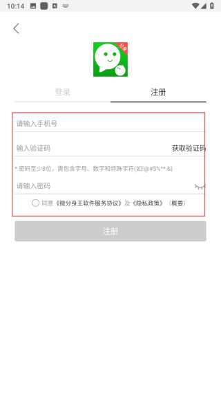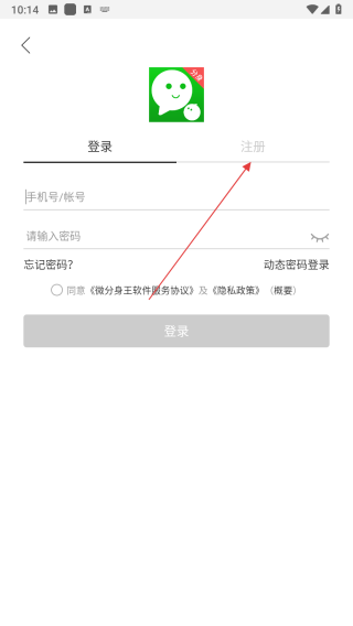 3、在登錄/注冊(cè)界面,點(diǎn)擊注冊(cè)選項(xiàng)卡,切換到注冊(cè)頁面。
