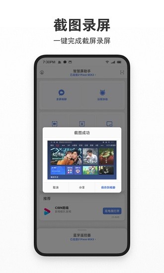 智屏助手是一款針對智能電視的手機控制應用,完成連接后,可以使用遙控器、投屏、電視管理、錄屏截屏、青少年模式、遠程協助等功能,給你帶來便捷的智能電視使用體驗。