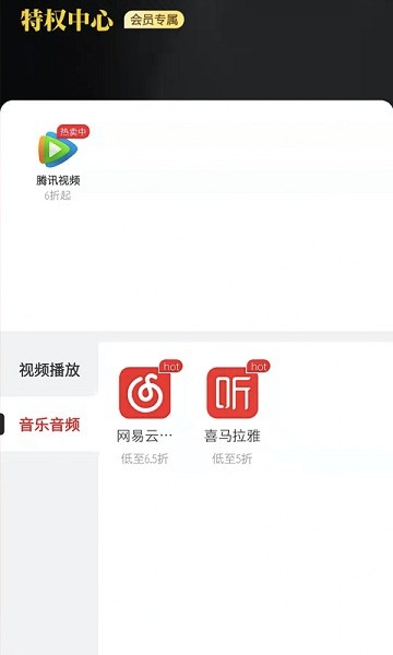 1、全網(wǎng)視頻會員4折起,熱門音樂、小說充值5折起