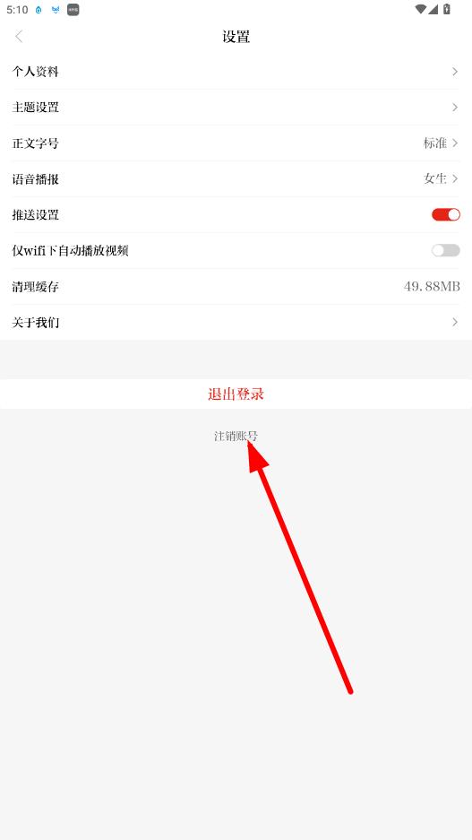 3、在設(shè)置界面里,找到注銷賬號(hào)選項(xiàng)并點(diǎn)擊,進(jìn)入注銷相關(guān)流程頁(yè)面。
