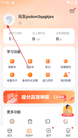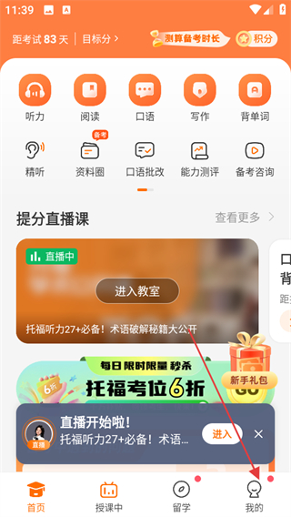 1、打開小站托福APP,點擊底部導航欄中的我的選項。