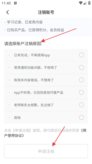 4、在注銷賬號頁面,選擇賬戶注銷原因,點擊申請注銷。