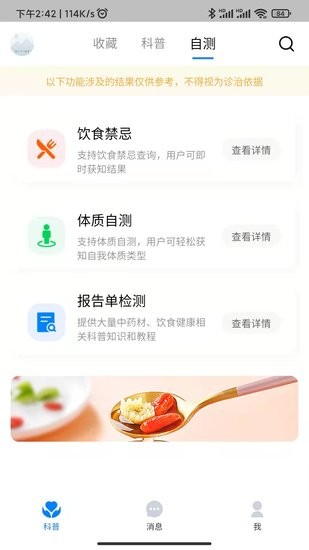 3、在線進(jìn)行自我檢測身體狀況,了解飲食禁忌。