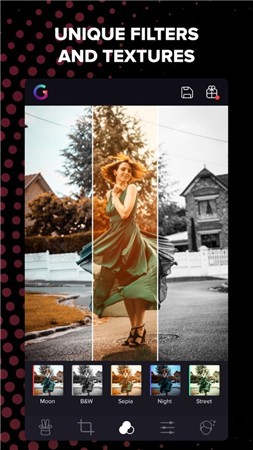 各種質(zhì)感濾鏡,層出不窮的特效,除此之外,還有更加專業(yè)的圖片美化工具,讓你創(chuàng)作出完美的作品!這里擁有能讓您制作出色照片所需的一切