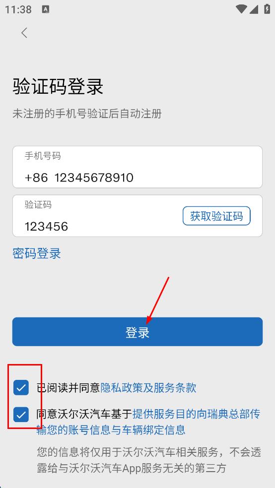 4、勾選同意隱私政策及服務(wù)條款,點擊“登錄”按鈕。