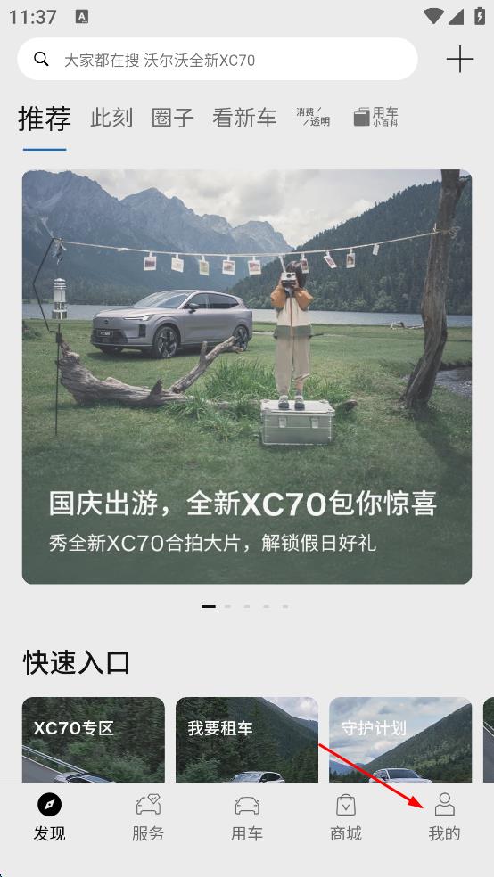 1、進(jìn)入沃爾沃汽車軟件后,點擊頁面右下角“我的”選項。