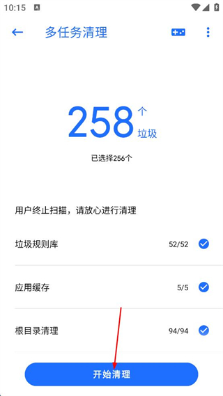 2、等待軟件掃描垃圾規(guī)則庫(kù)、應(yīng)用緩存、根目錄清理等內(nèi)容。