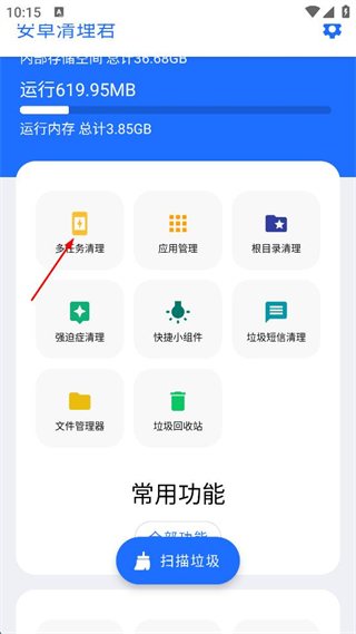 1、進(jìn)入軟件首頁(yè),點(diǎn)擊多任務(wù)清理。