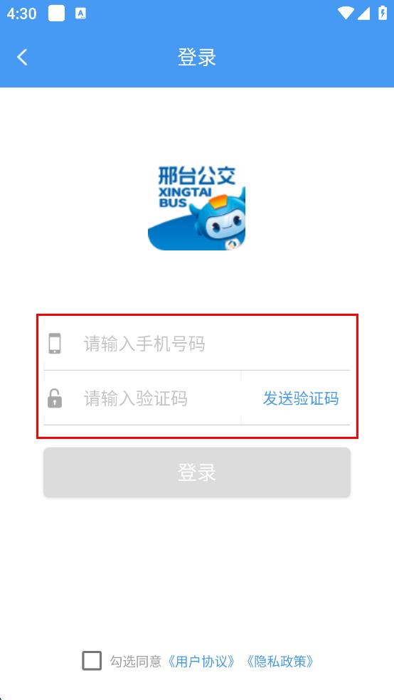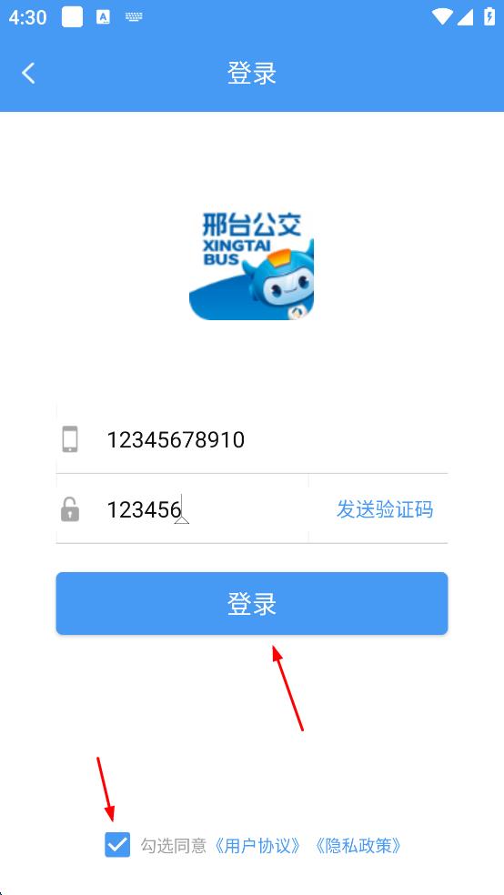 4、勾選同意用戶協(xié)議,隱私政策,然后點(diǎn)擊藍(lán)色“登錄”按鈕,完成登錄操作。