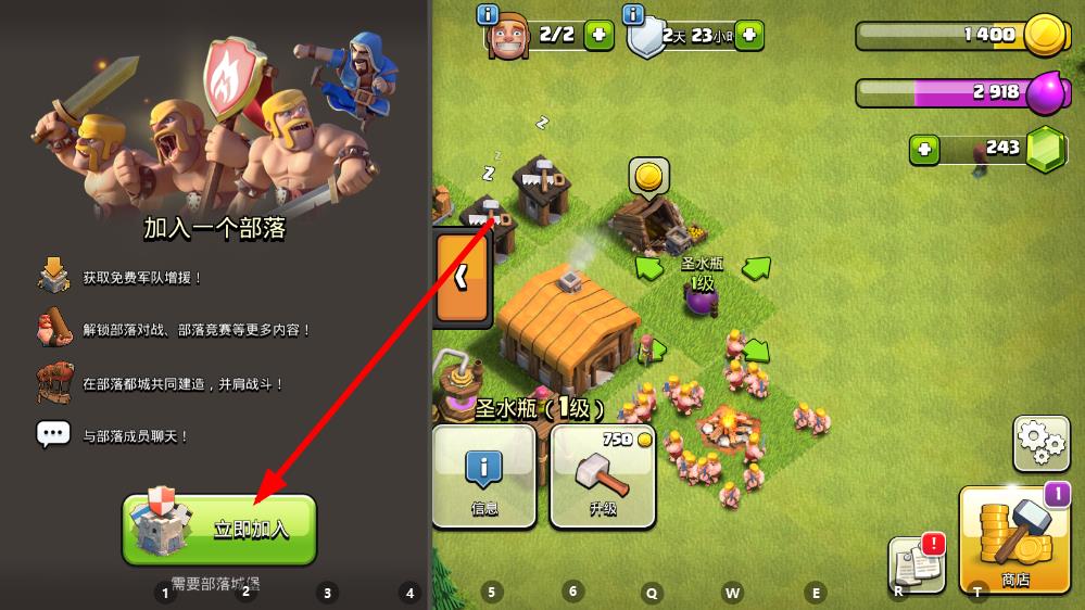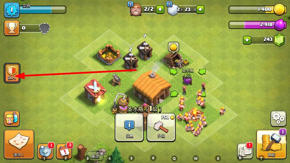 1、在部落沖突游戲界面,點(diǎn)擊左側(cè)加入圖標(biāo),進(jìn)入加入部落頁面。
