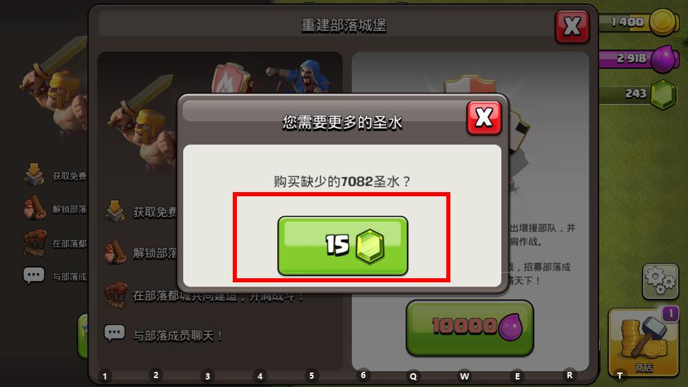 4、若圣水不足,按提示選擇花費(fèi)15寶石購買缺少的圣水,完成后即可嘗試加入部落。