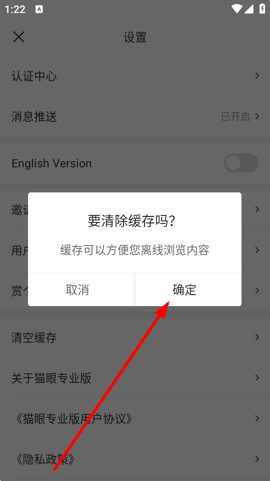 3、在設(shè)置的界面,點(diǎn)擊清空緩存按鈕,彈出清除緩存的確認(rèn)框。