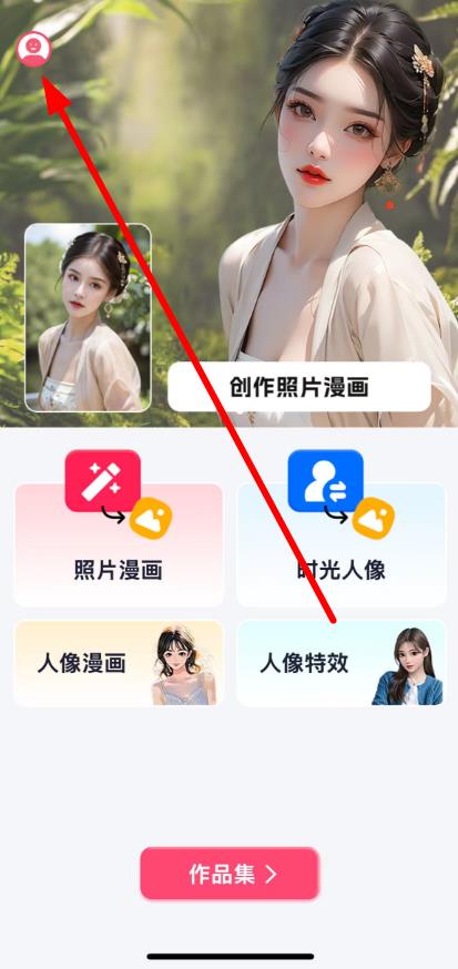 1、打開照片漫畫軟件,點擊界面左上角的個人中心圖標進入個人中心頁面。