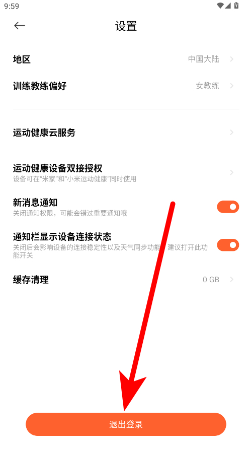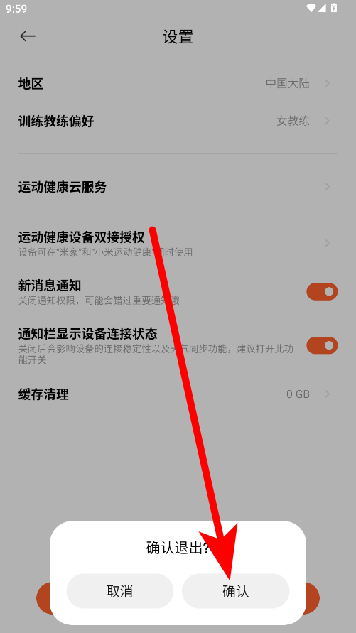 3、在設(shè)置頁面,點擊底部的退出登錄按鈕,彈出確認退出提示框。