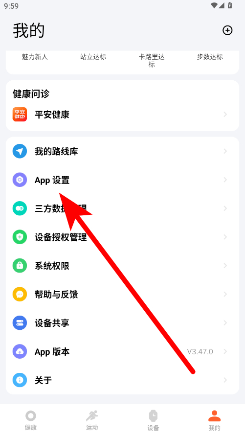 2、在個人頁面,點擊App設(shè)置選項,進入設(shè)置頁面。