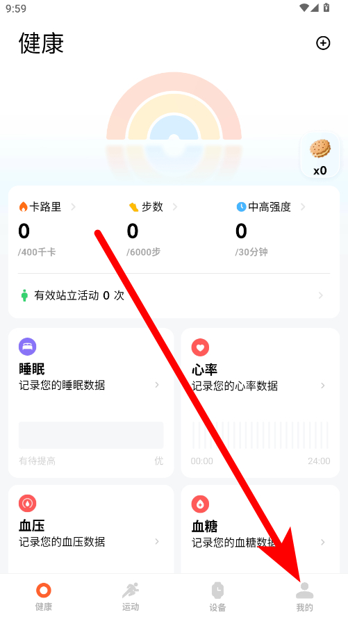 1、在小米運動健康的健康頁面,點擊右下角我的選項,進入個人頁面。