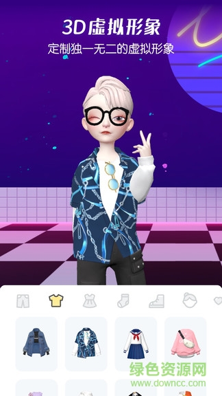 完全自由定義的專屬虛擬形象,潮酷風格服裝隨性搭配,3D捏臉百變換裝,愛豆同款隨時get~