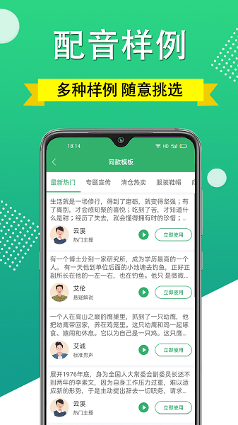 1、根據(jù)你定制的內(nèi)容,輕松一點就能完成配音