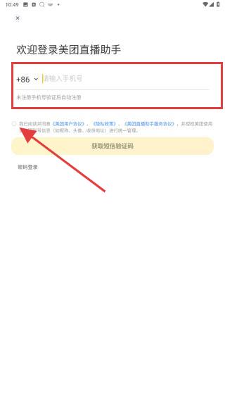 3、進(jìn)入登錄頁,輸入手機(jī)號(hào),勾選已閱讀并同意協(xié)議含用戶服務(wù)、隱私政策等。