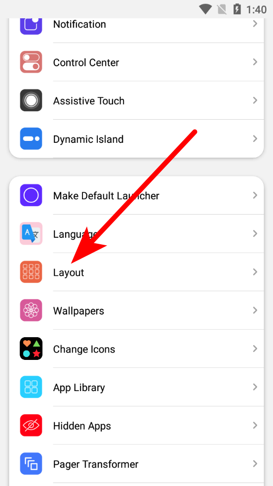 2、在啟動器設(shè)置界面中,找到并點擊Layout選項,進(jìn)入布局設(shè)置頁面。