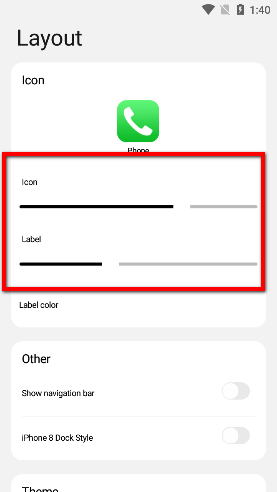 3、在Layout設(shè)置頁面中,找到Icon選項,通過調(diào)節(jié)滑塊來更改圖標(biāo)大小。