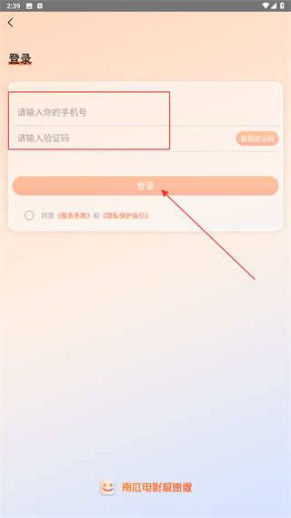 3、在登錄的頁(yè)面內(nèi),輸入手機(jī)號(hào)、驗(yàn)證碼,再點(diǎn)擊登錄即可。