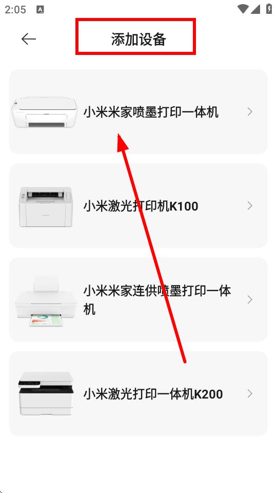 3、進(jìn)入添加設(shè)備界面后,選擇自己擁有的打印機(jī)型號,比如小米米家噴墨打印一體機(jī)。