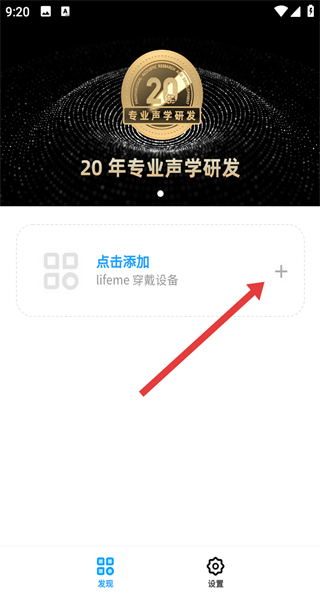 2、在主界面,通過點擊添加lifeme穿戴設(shè)備區(qū)域的加號按鈕,進(jìn)入添加設(shè)備界面。