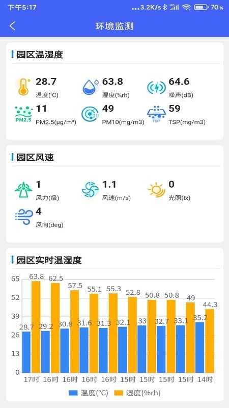 支持園區(qū)環(huán)境監(jiān)測(cè)的功能,通過(guò)軟件就可以知曉園區(qū)的溫濕度、園區(qū)風(fēng)速等,有詳細(xì)的圖表提供