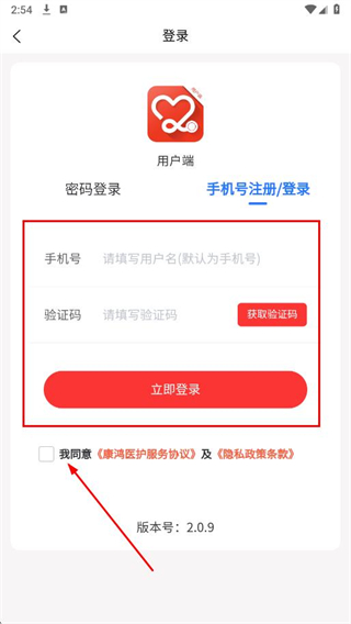 3、輸入手機號和驗證碼,勾選協(xié)議,點擊立即登錄,完成注冊。