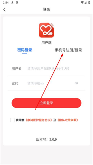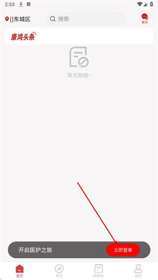 1、打開康鴻醫(yī)護APP,在首頁點擊立即登錄。